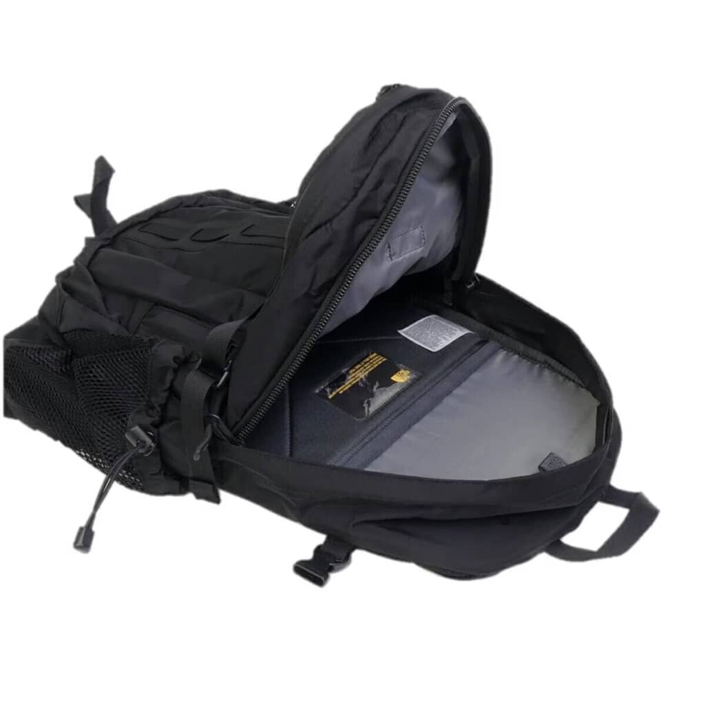 内部には15インチ前後のノートPCを収納できるパッド入りスリーブを備え、前面には小物を整理できるポケットを配置。両サイドのメッシュボトルポケットやコンプレッションベルトで、荷物を安定させながら快適に持ち運べます。背面とショルダーストラップはクッション性に優れたエアメッシュ構造で、長時間の移動でも疲れにくい設計。シンプルながらもアウトドア由来の機能性を備え、デイリーにもトラベルにも活躍する万能モデルです。