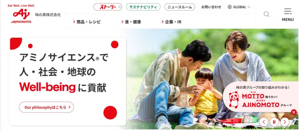 第1位は、「味の素」でした。1907年に設立された「鈴木製薬所」を前身とする味の素。1960年には、昆布のうまみにかつお節のうまみを加えた「味の素プラス」を世界初の複合調味料として発売しました。以降も世界有数のアミノ酸メーカーとして、食品事業とバイオ&ファインケミカル事業を柱とした事業をグローバルに展開しています。