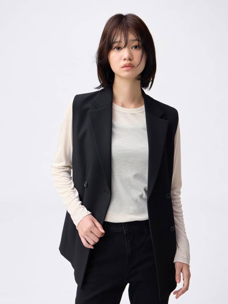 アシンメトリーなペプラムデザインが、シルエットに表情をプラス。1枚で存在感があり、ニットやブラウスと合わせるだけで洗練されたコーディネートが完成します。カラーは落ち着いたグレーで、幅広いシーンに取り入れやすいのもポイントです。