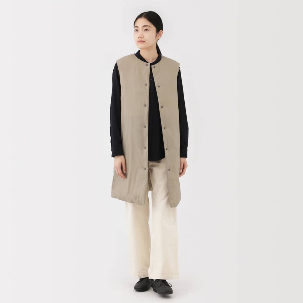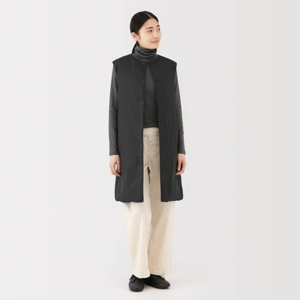 無印良品「婦人 軽量ダウンポケッタブルノーカラーロングベスト」とは?