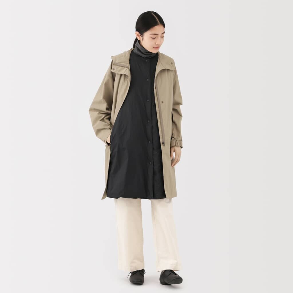 ユニクロの「パフテックコンパクトジャケット」(5990円)は、高機能中わたを採用した、軽くて暖かいアウター。折りたたんで付属のポーチに収納できるため、寒暖差に対応できる持ち運び用アウターとして重宝します。表地はナイロン100%で、撥水加工が施されており、小雨や雪などの軽い悪天候にも対応可能。また、裏地は静電気防止機能付きなのもこれからの季節にぴったりです。