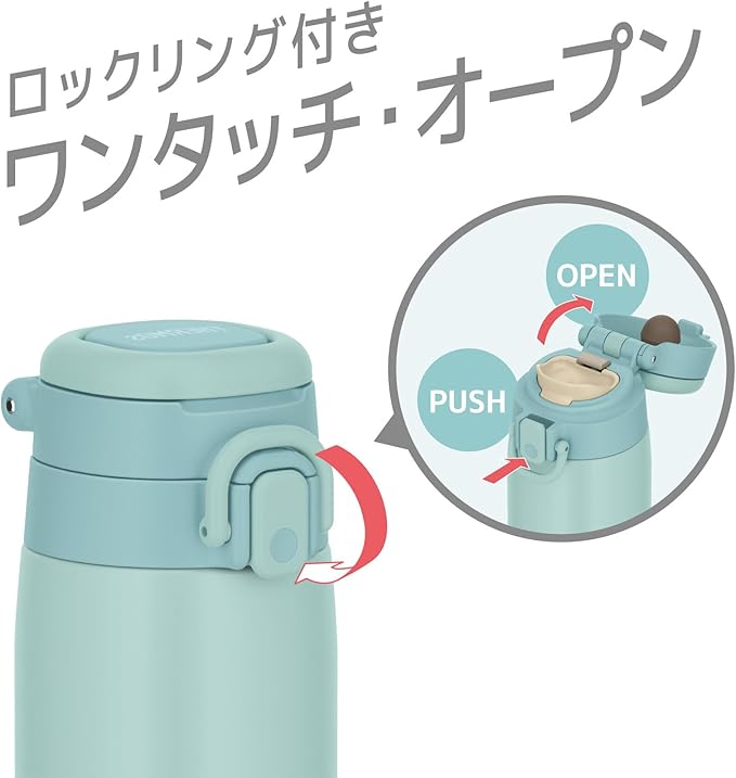 「真空断熱ケータイマグ」は、持ち歩きに便利なキャリーループ付きのマグボトルです。蓋の上部がループになっているため、使わないときは折りたたんでおけるのが魅力。オフィス・ジム・レジャーなど、あらゆるシーンで活躍してくれます。蓋は、ロックリングを外すとワンタッチで開閉できる優れもの。蓋・栓にゴムパッキンがついているので、横にしてもこぼれる心配がありません。
