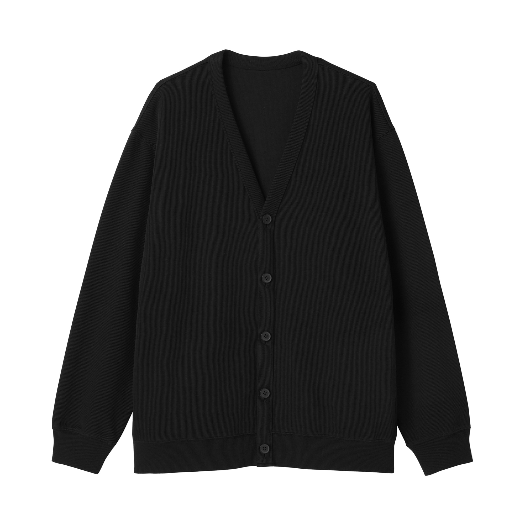シルエットは身幅にゆとりを持たせたリラックスフィットで、ニットカーディガンのきちんと感とスウェットの気軽さを両立。両脇にポケットを備え、普段使いからオフィスシーンまで幅広く活躍する便利な羽織りアイテムです。