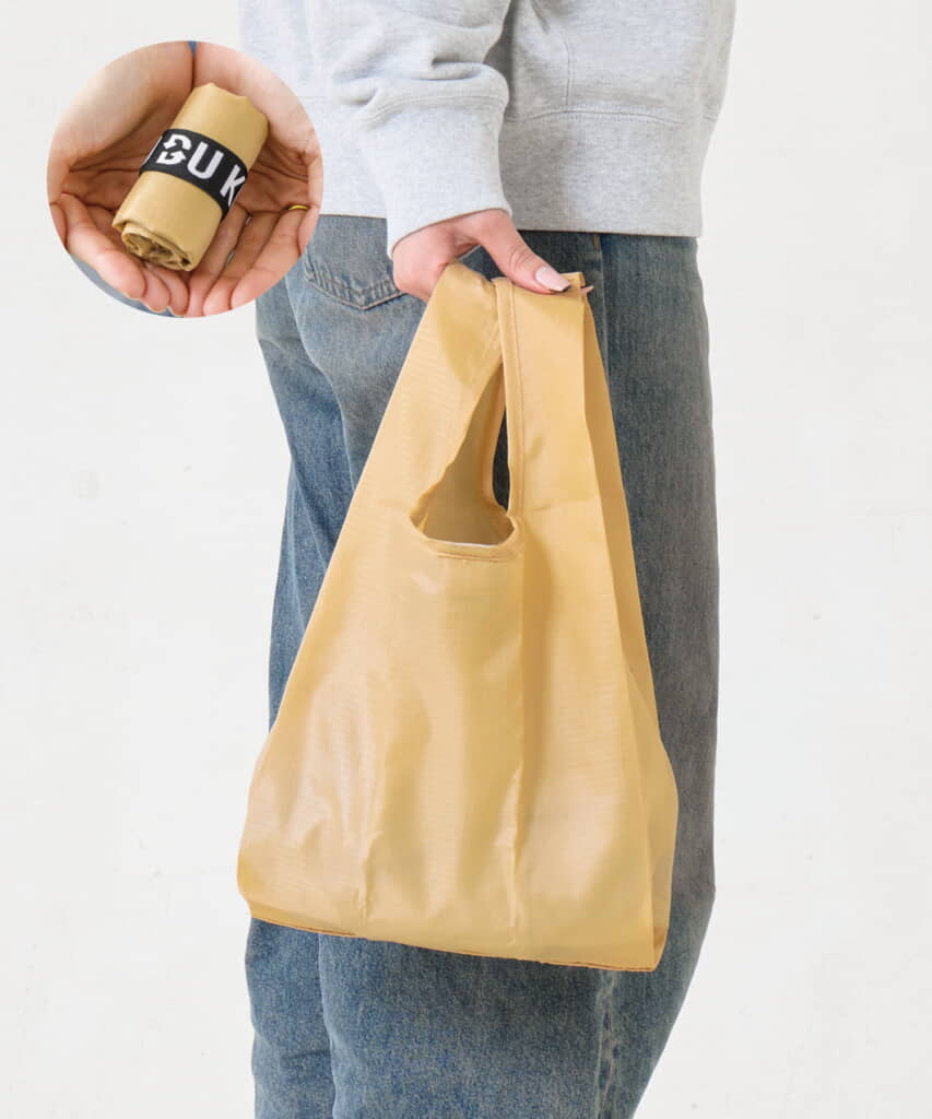 3COINSの「10kg耐荷重ミニエコバッグ」(税込み:330円)は、コンビニやスーパーでのちょっとしたお買い物に便利なサイズのエコバッグ。使用しないときは小さく折り畳んで付属のゴムバンドで留めることで、コンパクトに持ち運ぶことができます。コンパクトなサイズ感ながら耐荷重は10キロとしっかりしており、ペットボトル飲料など重たいものを入れても安心。カラーはベージュ・ホワイト・オレンジの3種類を展開しています。