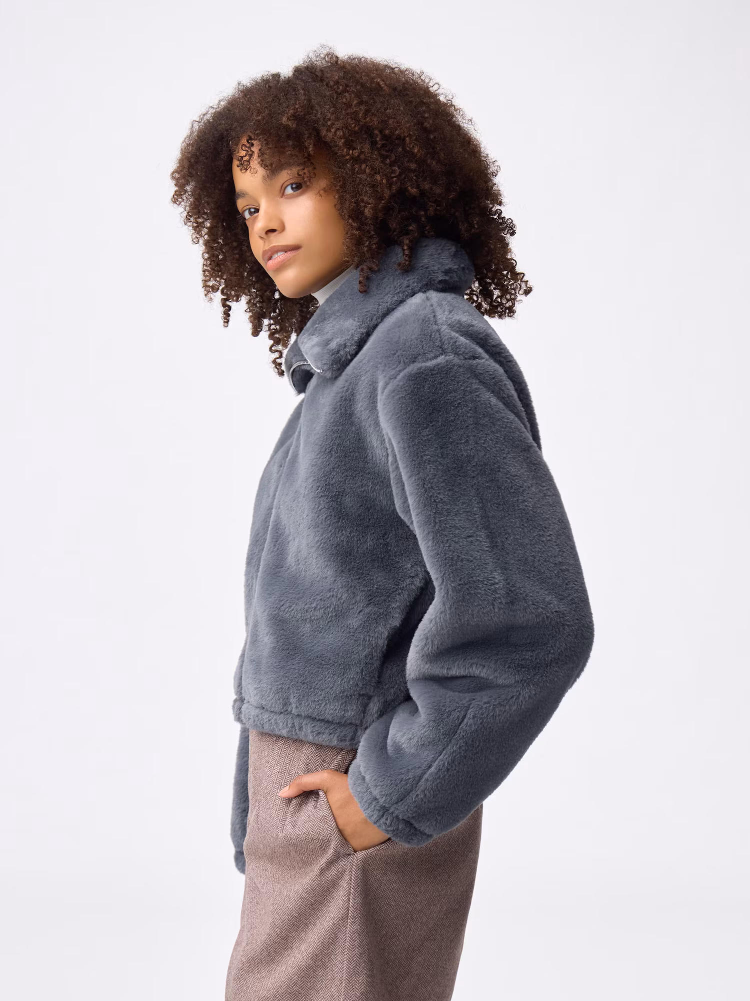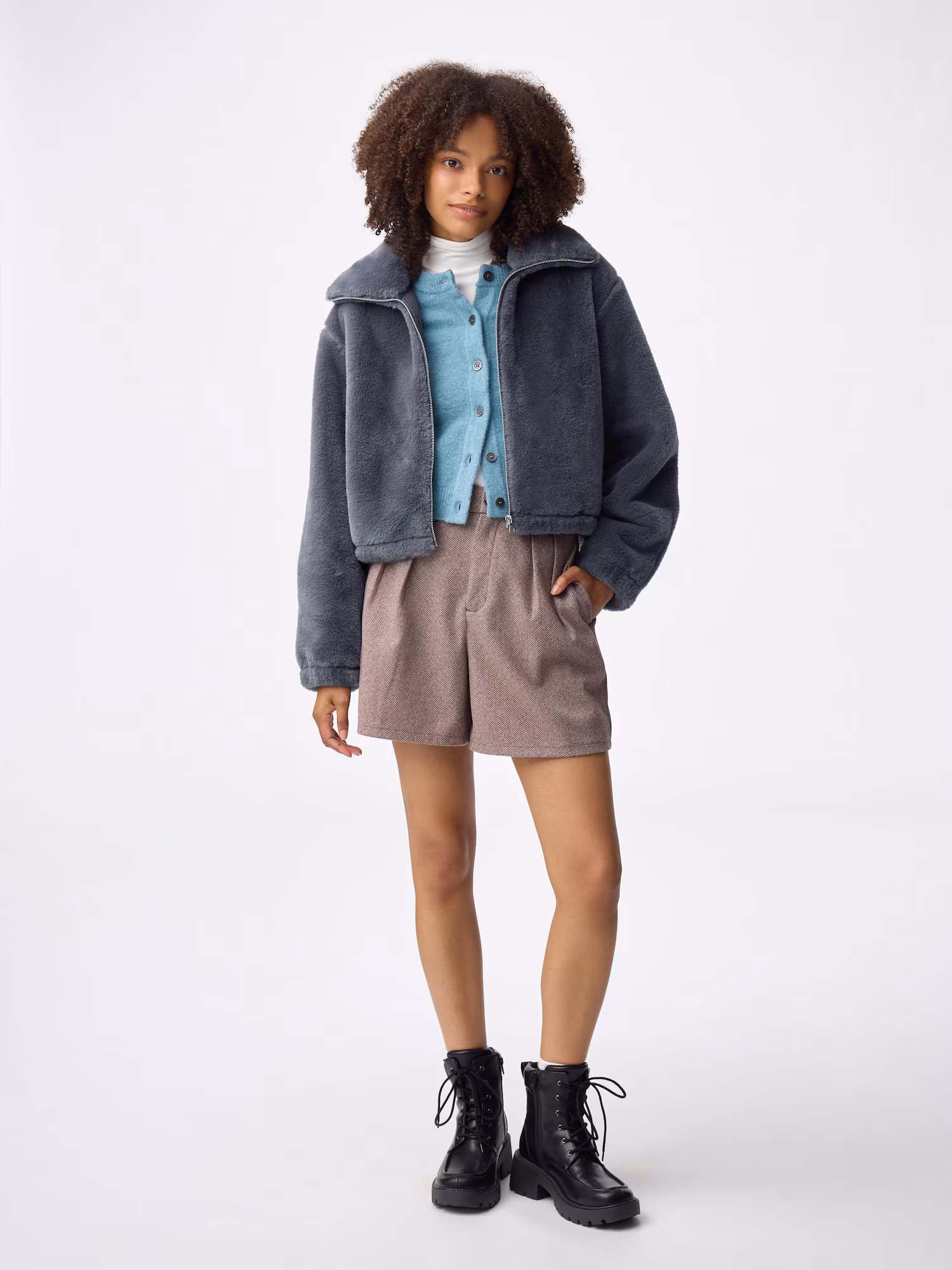 GUの「フラッフィーブルゾン」は、毛足が長くふんわりとした肌触りの素材でつくられたブルゾン。スタイリングのアクセントにもなる大き目の襟が特徴で、ジップを一番上まであげると首元を覆ってくれるので防寒にもぴったりです。また、ボリューム感がありながらもすっきりしたショート丈で、スカートやワンピースなどとの相性も良く、カジュアルにもきれいめにも幅広いスタイリングに対応。価格も2990円と手頃でコスパも抜群なアイテムとなっています。