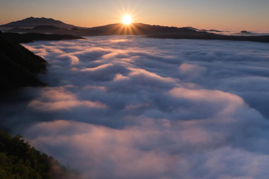 夜は“青のプラネタリウム”として数千個の蓄光石が淡く光り、星空と合わせて1万超の光に包まれる演出も実施(積雪期は休止)。星見は春・秋・冬が好機で、空気が澄みやすい反面、防寒と風対策が必須です。また、摩周湖は年間を通じて霧が発生し、特に夏のシーズンは濃霧が多く「霧の摩周湖」と呼ばれます。早朝には摩周湖に雲海が広がるダイナミックな姿を観測することもできます。
