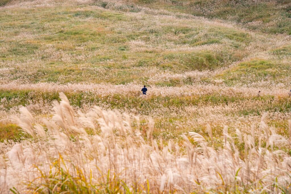 秋のさわやかな風を感じながら遊歩道を進むと、ススキの穂がすぐそばまで迫り、思わずカメラを構えたくなります。比較的散策しやすい場所ですが砂利道が続くので、歩きやすい靴で訪れましょう。