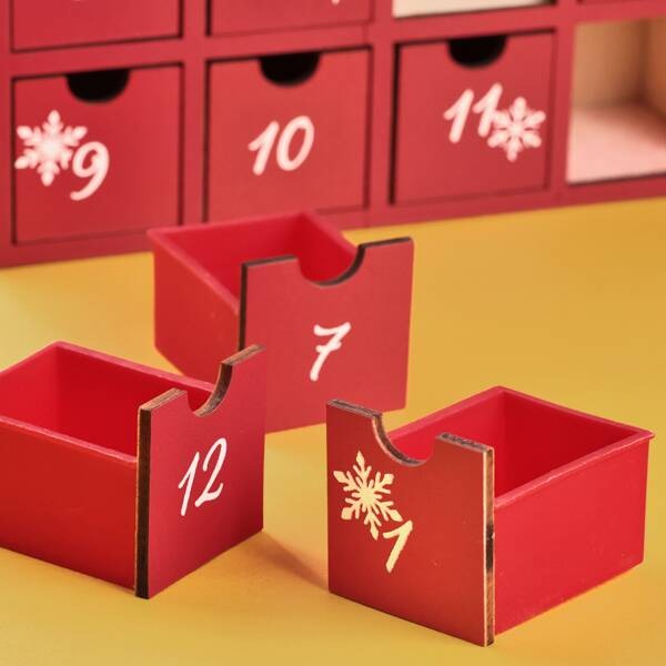 家の形をした木製のアドベントカレンダー「ウッドハウスカレンダー(ライト付き)2025」は、カルディのクリスマス限定オリジナル商品。カレンダーには小ぶりな引き出しが備えられており、セットの飴をしまっておくことで、毎日1つずつ開けてクリスマスまでの時間を盛り上げてくれるでしょう。背面のスイッチを入れるとディスプレイ部分にLEDライトが灯る仕様になっており、優しい灯りとともにカウントダウンを楽しめる工夫が施されています。