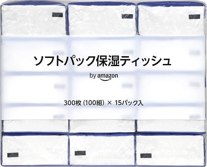 by Amazon ソフトパック 保湿ティッシュ FSC認証紙 300枚100組 (3枚重ね) × 15パック入