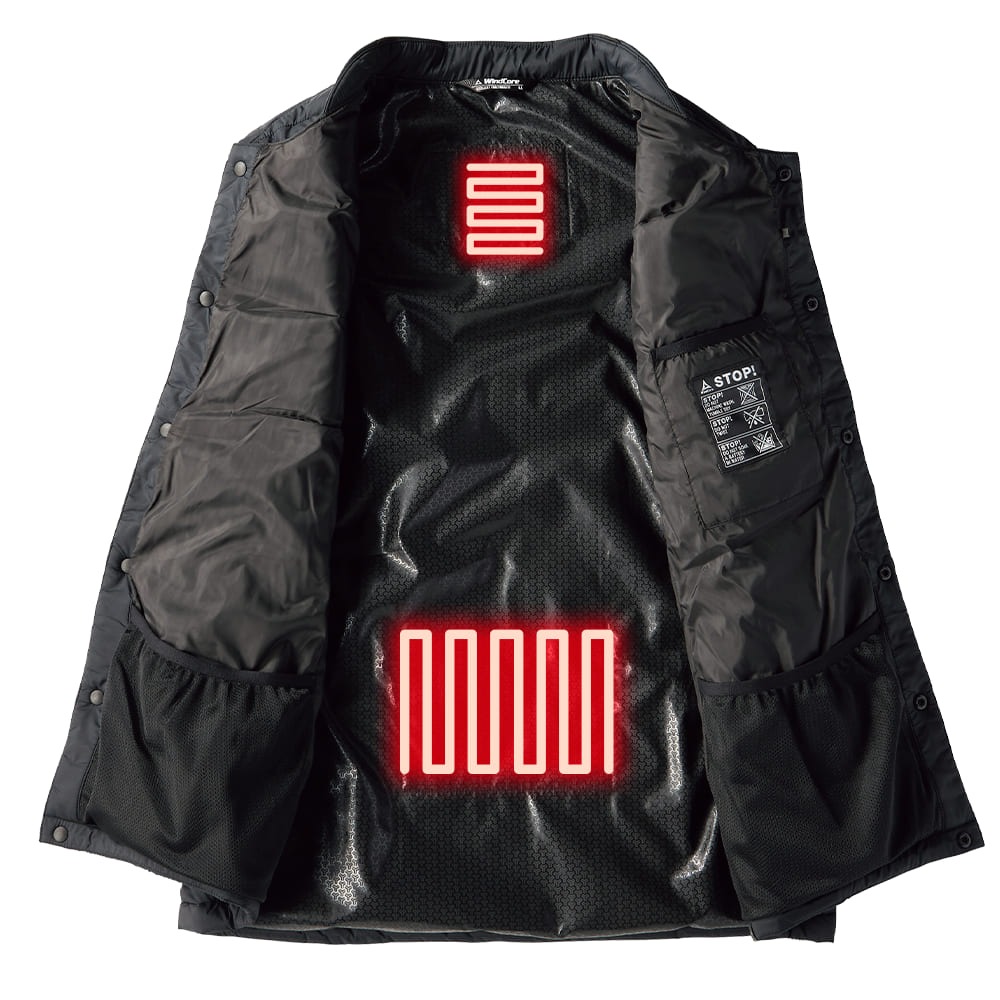 購入者からは、「電熱の調整ができるのもうれしいし、電源入れなくても中綿が暖かい。中にも着やすく非常に使いやすい!」「今まではカイロを貼って寒さをしのいでいたが、電熱ベストならジャケットの下に着こんで寒い時は電熱on、気温が上がれば電熱off出来るし、強、中、弱の温度調整も出来て快適」「室内エアコンの暖房を点けるよりはコチラの方が暖かいです」「背中を温めてくれるこの冬必須のアイテムになりました」といった声が寄せられています。