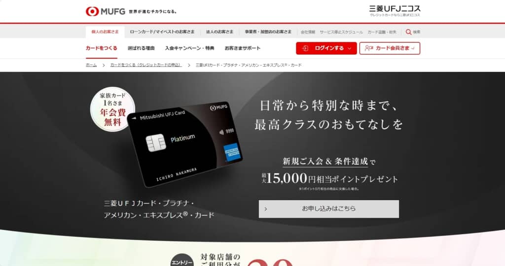画像:三菱UFJカード・プラチナ・アメリカン・エキスプレス・カード