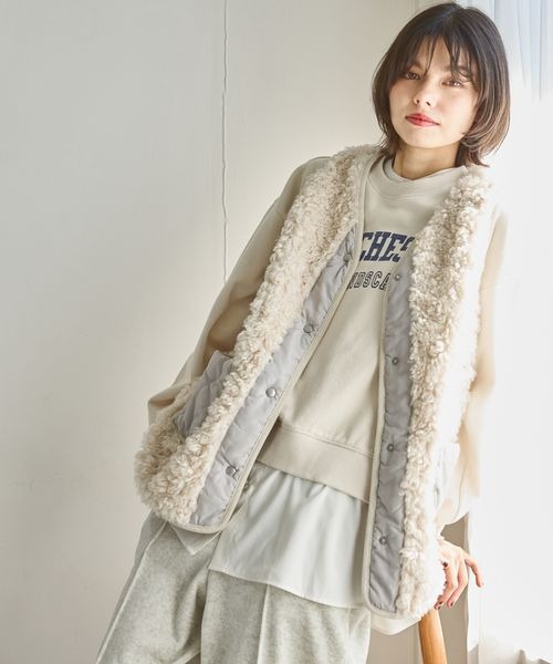 素材は軽く、見た目よりも快適な着心地。ボリュームがありながらも重たく感じにくく、長時間着ていても疲れにくいのがうれしいポイントです。カジュアルなロンTやスウェットの上に羽織れば、デイリースタイルに抜け感をプラス。フェミニンなワンピースやブラウスに合わせても自然になじみます。and STおすすめのスタイリングは「ファーベスト×アウター」のレイヤードなのだとか。