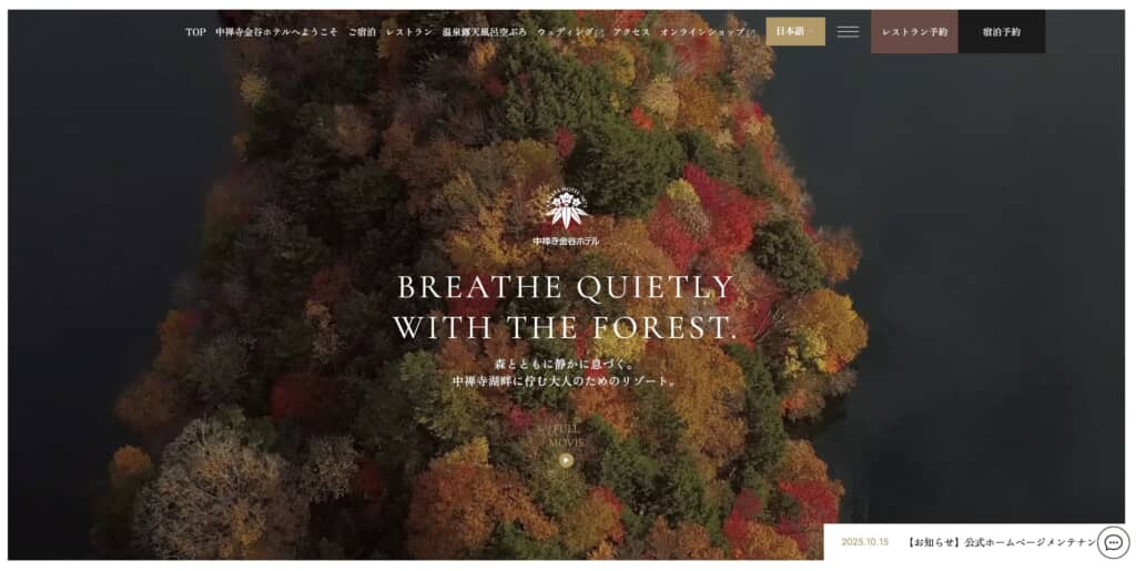 第2位は、得票率10.8%の「中禅寺金谷ホテル」でした。中禅寺湖畔に佇む、木のぬくもりあふれるログハウス風のホテルです。「温泉露天風呂 空ぶろ」では、紅葉や雪景色、満天の星など、季節ごとに異なる表情を楽しめます。