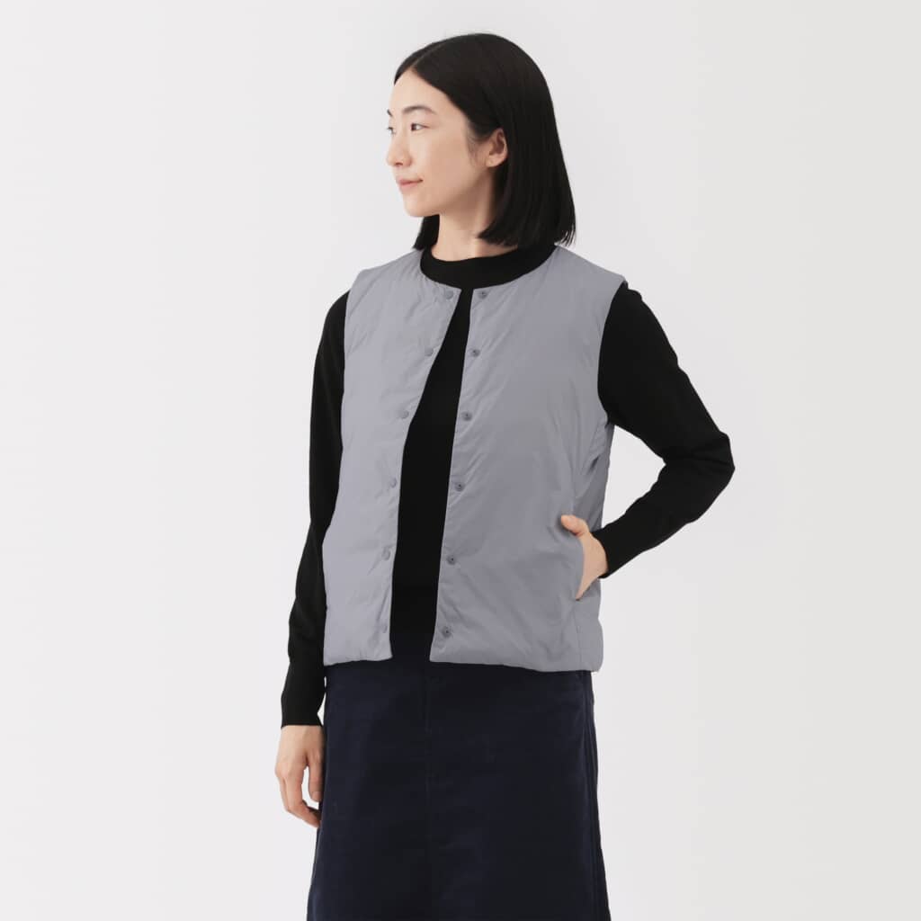 【無印良品】“軽量ダウンポケッタブルノーカラーベスト”がめっちゃ軽いのにめっちゃあったか! 「軽さと温かさが優秀」「着膨れしない安心感」