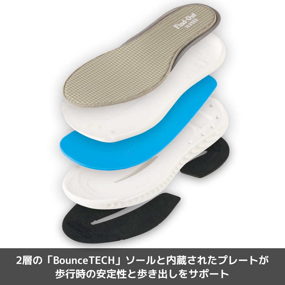 ワークマンの「ハイバウンスウォーク」は、高反発素材「BounceTECH(バウンステック)」を搭載したウォーキングシューズ。2層構造のBounceTECHソールと内蔵プレートが歩行時の安定感を高め、軽快な歩き出しをサポートします。つま先を反り上げた設計により、つまずきにくくスムーズな重心移動が可能。さらに反射材付きで夜間の視認性にも配慮しています。本革風のマットな素材を採用した、上質なデザイン性も魅力。カラーはブラックとホワイト、価格は2900円で販売されています。