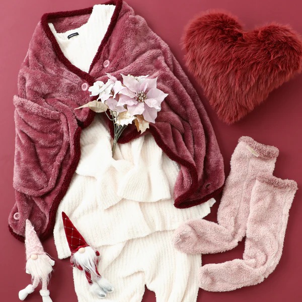 「ウォームフリース ソックス ピンク」は、柔らかく保温性の高いフリース素材を使用したルームソックスです。素材はポリエステル100%、着丈は350mm、対象サイズは約23.0–24.5cm。重量は0.11kgと軽く、家での長時間使用でも負担になりにくい設計です。洗濯機可(ネット使用)、ドライクリーニング・タンブル乾燥・アイロン不可などのケア表示も明確で、静電気防止加工が施されています。フィット感の面では、くるぶしと履き口の2か所にゴムを入れて程よいフィット感で履きやすい仕様。同シリーズのウォームフリース 4WAYポンチョとコーディネートすれば、統一感のあるおうち時間スタイルが完成します。カラーは本記事のピンクのほか、同シリーズでホワイトやグレー、パープル展開も確認でき、ギフト用途にも適しています。