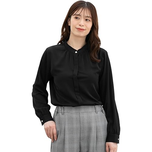 13位:[ハニーズ] ブラウス 長袖 再生ポリエステル スタンドフリル フロントボタン レディース 7730610109