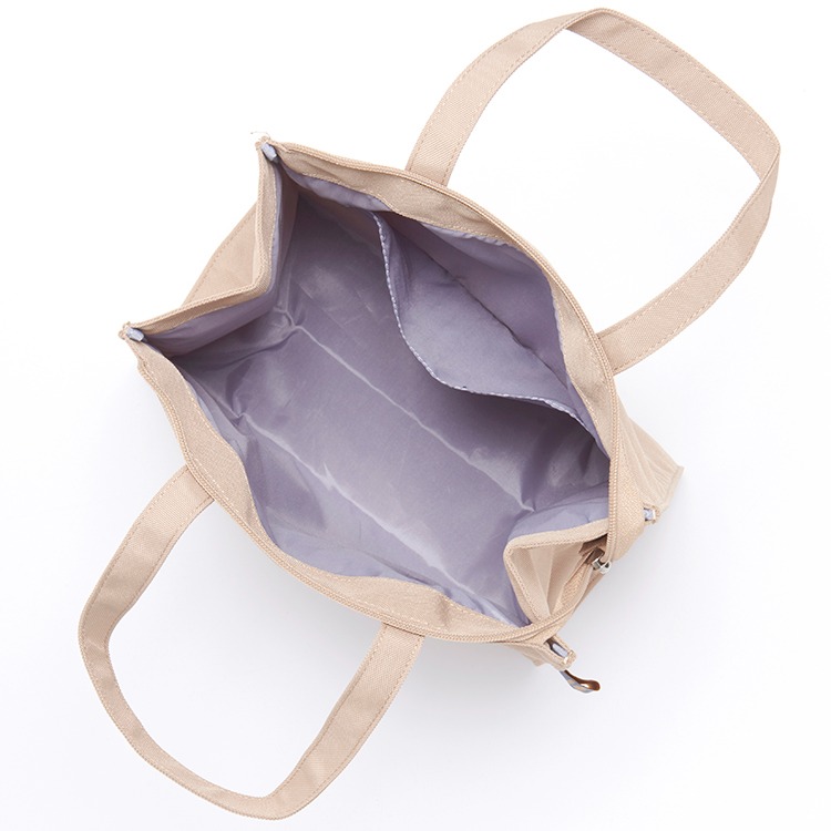 3COINSの「ランチトート/KITINTO」は、毎日のランチタイムを明るく彩ってくれるシンプルなランチトート。内側は汚れを拭き取りやすい素材で作られており、お弁当や食事の持ち運びにぴったりです。保冷剤や小物を入れられる内ポケットに加え、ボトルホルダーも備えているので、水筒やタンブラーもしっかり収納可能。税込み660円というリーズナブルな価格も魅力です。