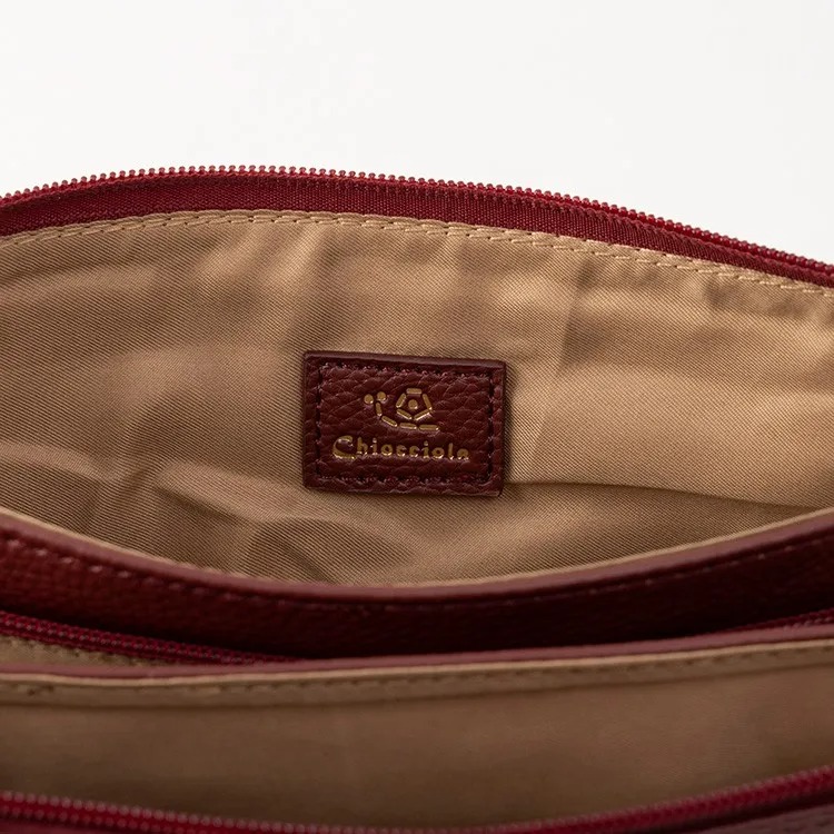 そんなJALと本物志向の大人の女性のためのブランド・キオッチョラ(Chiocciola)による「5層収納レザーショルダーウォレットバッグ」(税込1万3750円)は、財布・ポーチ・ミニバッグを一体化した多機能ショルダーです。傷がつきにくく、使うほど手になじむソフトレザーを採用。内装は5層構造で、カードポケット3・オープンポケット4・内ファスナー1を備え、外側にもファスナーポケットを装備します。