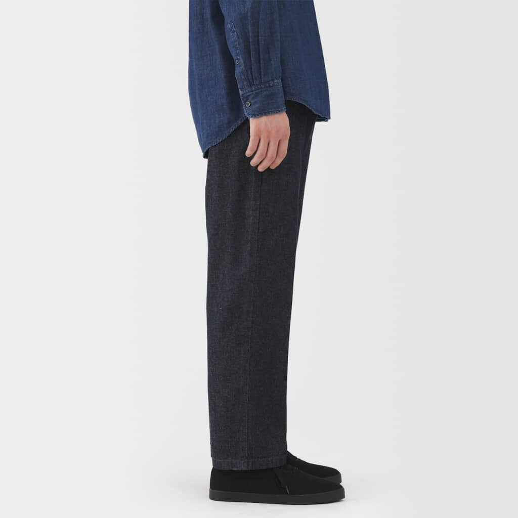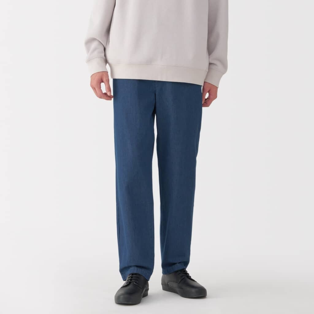 無印良品の「紳士 洗いざらしデニムイージーパンツ インディゴ」が、デニムなのに軽くてはきやすいと人気を集めています。