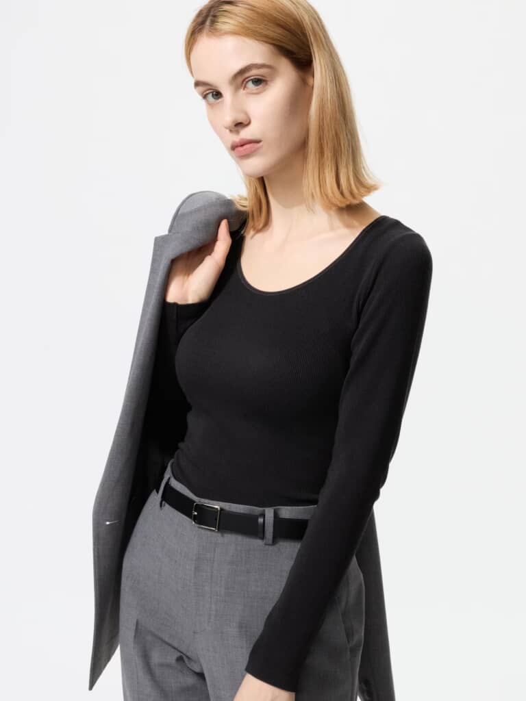 第14位:極暖ヒートテックリブUネックブラTシャツ/長袖