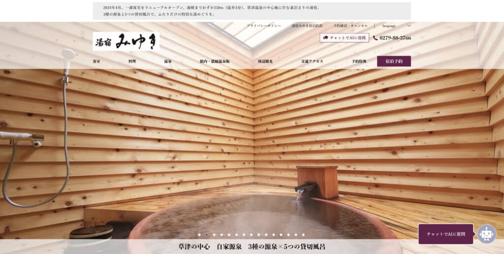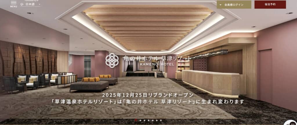 第1位は、得票率5.8で「草津温泉ホテルリゾート」でした。2025年12月から「亀の井ホテル 草津リゾート」としてリニューアルを予定しているホテルです。同ホテルの温泉は、草津温泉にある六つの源泉の中でも最大の湧出量と高温を誇る万代鉱源泉を使用しています。