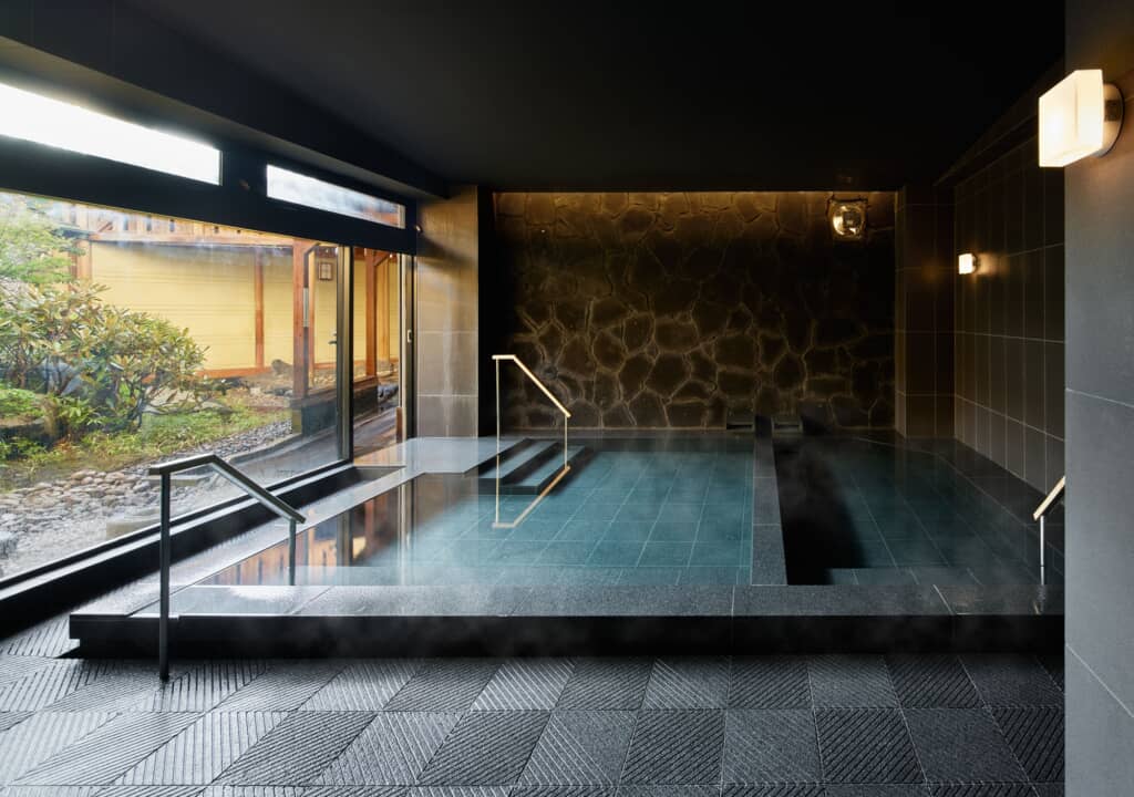 男女ともに利用できる庭園露天風呂があり、広々とした大浴場にはサウナと水風呂も完備。四季折々の景色を眺めながらリフレッシュすることができます。客室はスタンダードな和室、ツインタイプの洋室、広々とした和洋室を用意しており、上州文化の「美」と上州グルメの「味」の共演を楽しめるビュッフェも魅力となっています。