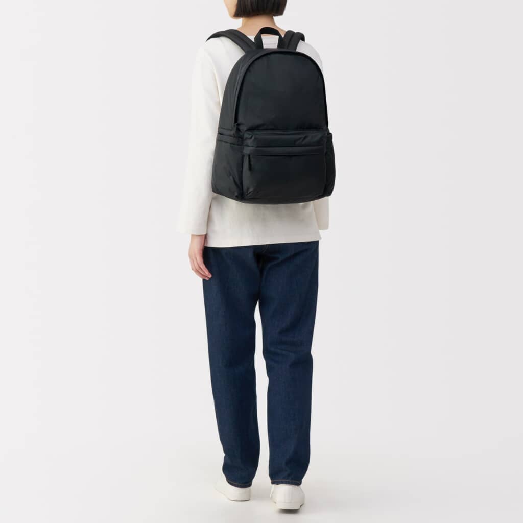 無印良品から販売されている「肩の負担を軽くする 撥水中わた入りリュックサック」が、重い物を入れて一日中歩き回っても肩が痛くならないのでストレスを感じず、ナイロン100%素材のため見栄えもよいと高評価を集めています。