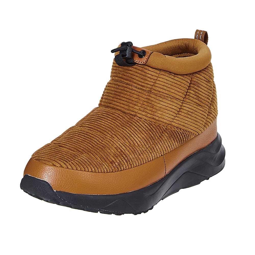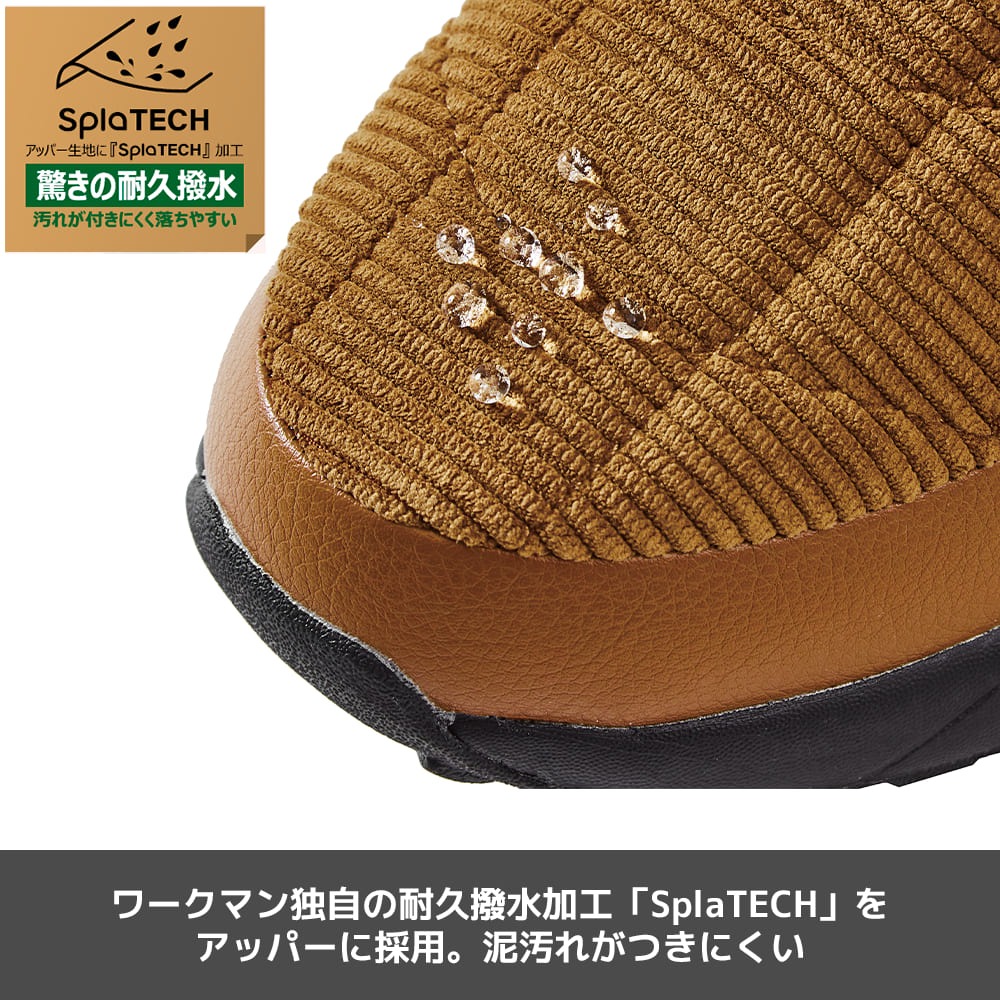 ワークマンの「コーデュロイモック」は、タウンユースにもぴったりな4センチ防水機能付きの防寒シューズ。接地面から4センチまでの防水性があり、急な雨の日でも安心して着用できます。アッパーにはワークマン独自の耐久はっ水加工「SplaTECH(スプラテック)」を採用し、泥汚れがつきにくいのもうれしいポイント。さらに3M社の高機能中わた「XEROGEL(ゼロゲル)」を使用し、保温性にも優れています。反射材も施されており、視認性を高めてくれるのも特徴。機能性とデザイン性を兼ね備えた一足です。カラーはブラックとキャメル、価格は2500円で販売されています。
