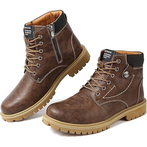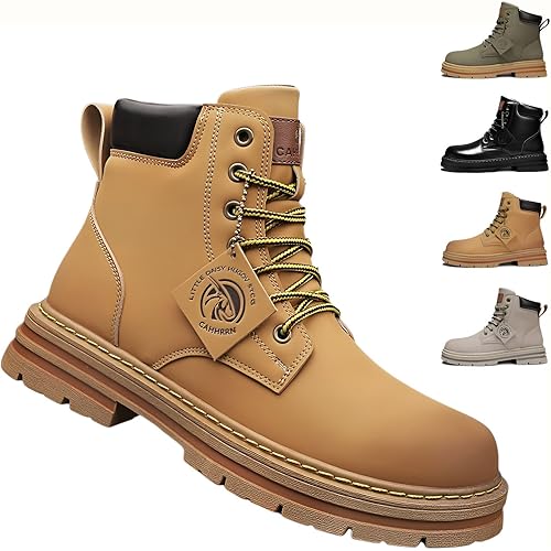 7位:[Firmiarii] ブーツ メンズ ワークブーツ 厚底 ハイカット エンジニア ショートブーツ レースアップ 編み上げ 防水 靴 アウトドア 防寒 防滑 イエロー 合皮 大きいサイズ カジュアル 通勤通学 バイク用 boots for men 秋冬用