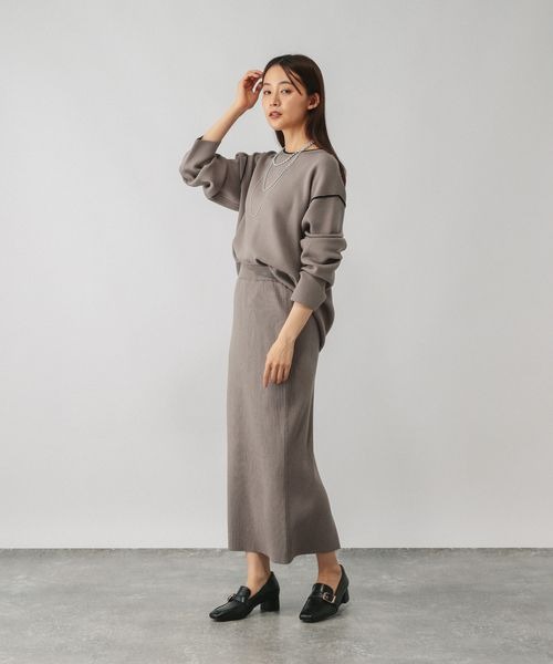 そんなグローバルワークの「アンチピリングなめらかSET UP/580919」(7990円)は、毛玉になりにくいアンチピリング仕様と、気軽に洗えるマシンウォッシャブル機能を備えたニットセットアップ。すっきりとした質感で、まだ気温の高い時期から春先まで長く活躍します。トップスはゆとりのあるシルエット、スカートは体のラインを拾いすぎないIラインで構成され、シンプルながら配色ラインがアクセントに。セットでも単品でも着回しやすいデザインに仕上がっています。