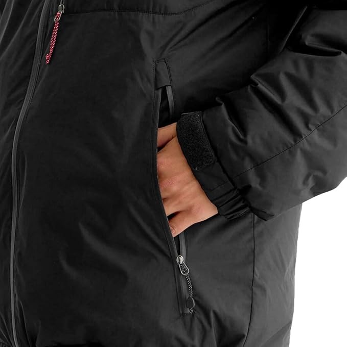 デザインはシンプルでミニマル。ややゆったりめのシルエットで、厚手のインナーを着込んでも窮屈にならず、冬本番のレイヤリングにもぴったり。フロントは風や雨の侵入を防ぐ止水ファスナー仕様。袖口はアジャスターでフィット感を調整でき、裾のドローコードを絞ることでさらに防風性を高められます。