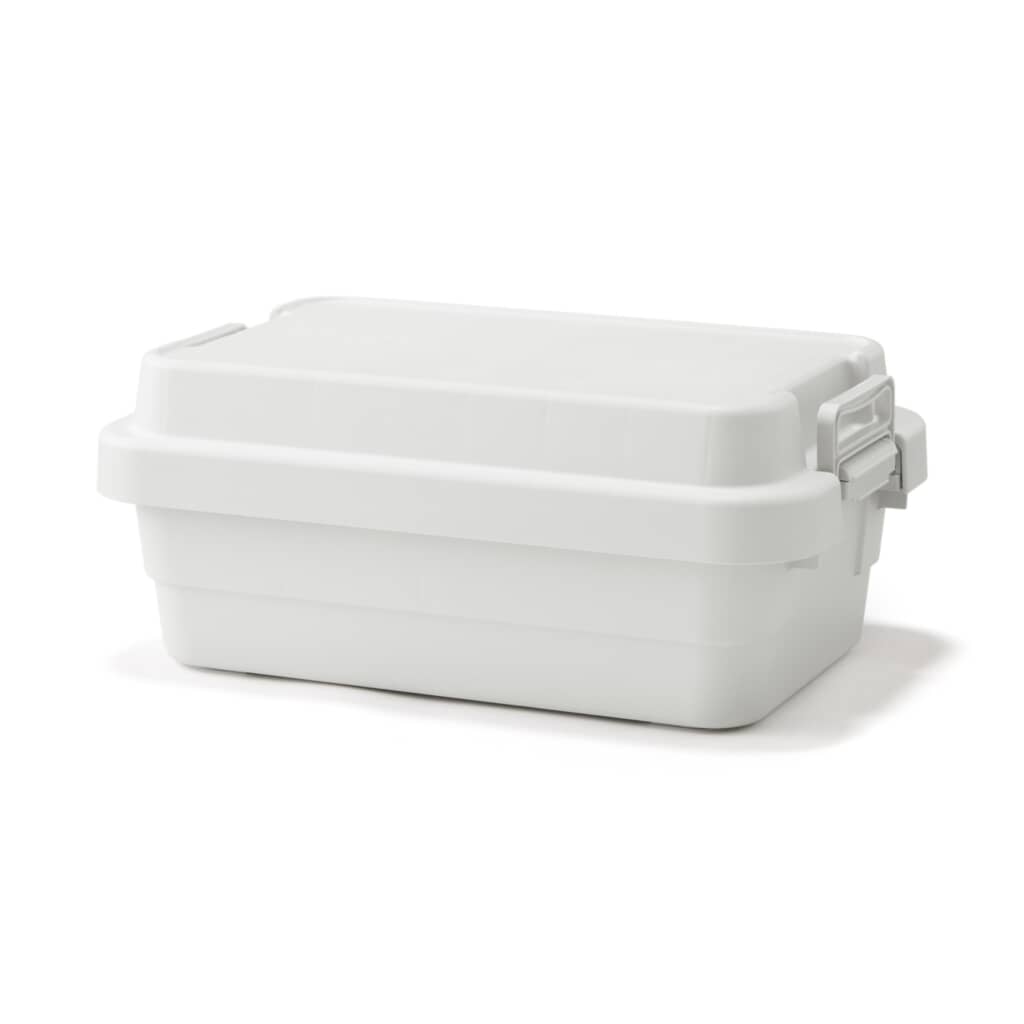 無印良品の「再生ポリプロピレン入り 頑丈収納ボックス 大 浅型 ホワイトグレー」は、ベランダなど屋外でも使用できる耐久性の高い収納ボックス。浅型タイプのため、棚下のデッドスペースにもすっきり収まります。