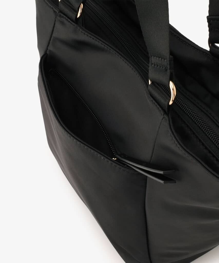 メイン収納はファスナーでしっかり閉じられる設計なので、プライバシーや中身のセキュリティー面も安心。内外には小物収納ポケットが備わっており、スマホや鍵、ハンカチなどをすっきり分けて収納可能です。持ち手は肩や腕にかかる負担を考えた設計で、長時間の使用でも疲れにくい作りになっています。