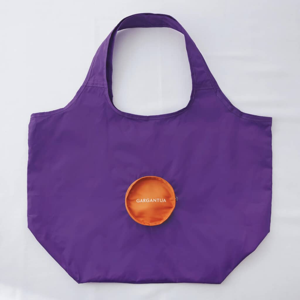 そんな「ガルガンチュワ」で販売されている「ブルーベリーパイ」は、1971年の開店以来愛され続けている人気商品。このパイをモチーフにしたエコバッグが「ブルーベリーパイ エコバッグ」です。まさにブルーベリーパイそのもののビジュアルでインパクト抜群。バッグ一体型のポーチを開くと、ブルーベリーフィリングをイメージした美しい紫色のエコバッグに変身します。