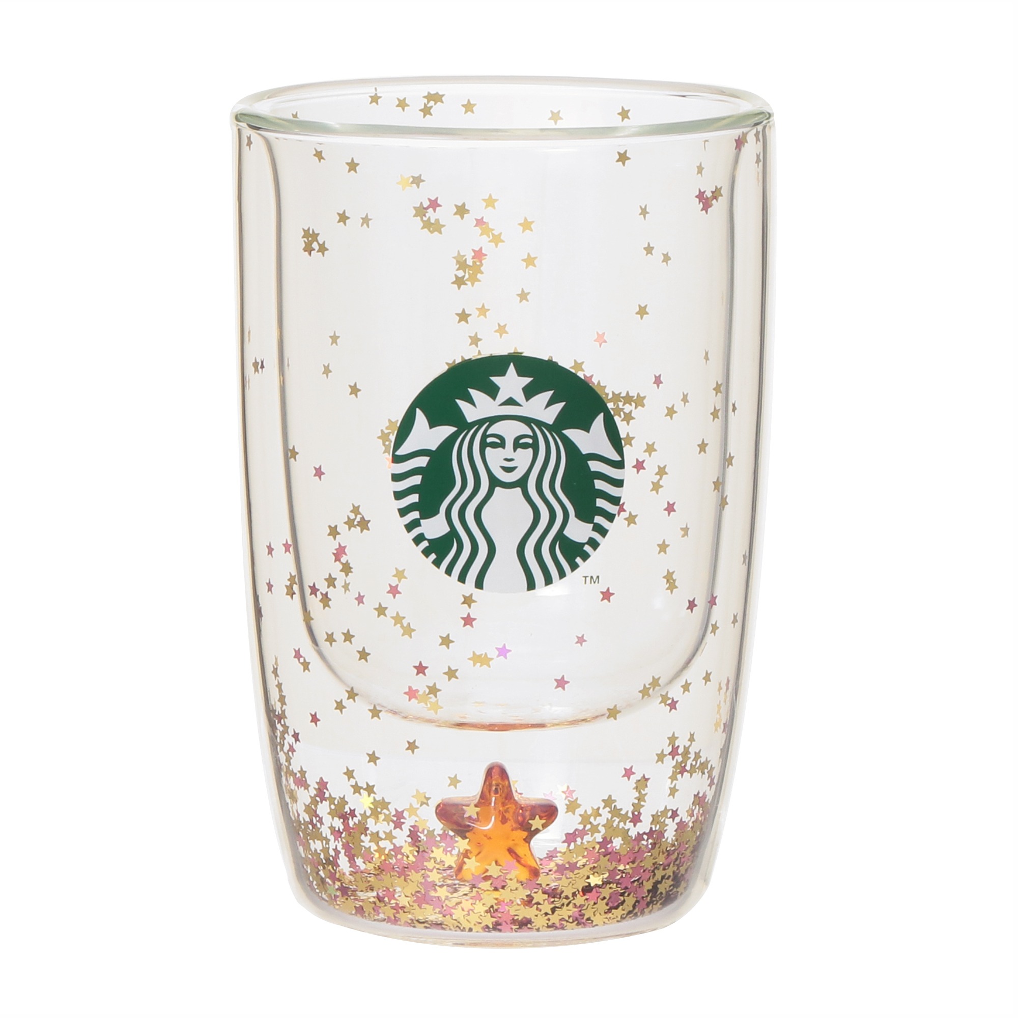 スターバックスの「ホリデー2025ダブルウォール耐熱グラススター355ml」は、ゴールドの星型コンフェッティと立体的な星のガラスチャームを内側にあしらった二重構造の耐熱グラス。サイレンロゴを中心に配したミニマルなデザインがホリデー気分を盛り上げてくれます。サイズは幅×奥行×高さが9.2センチ×9.2センチ×14.0センチ、実容量は355ミリリットル。耐熱温度差は120度で、電子レンジ・食器洗い乾燥機・直火・オーブンには非対応です。