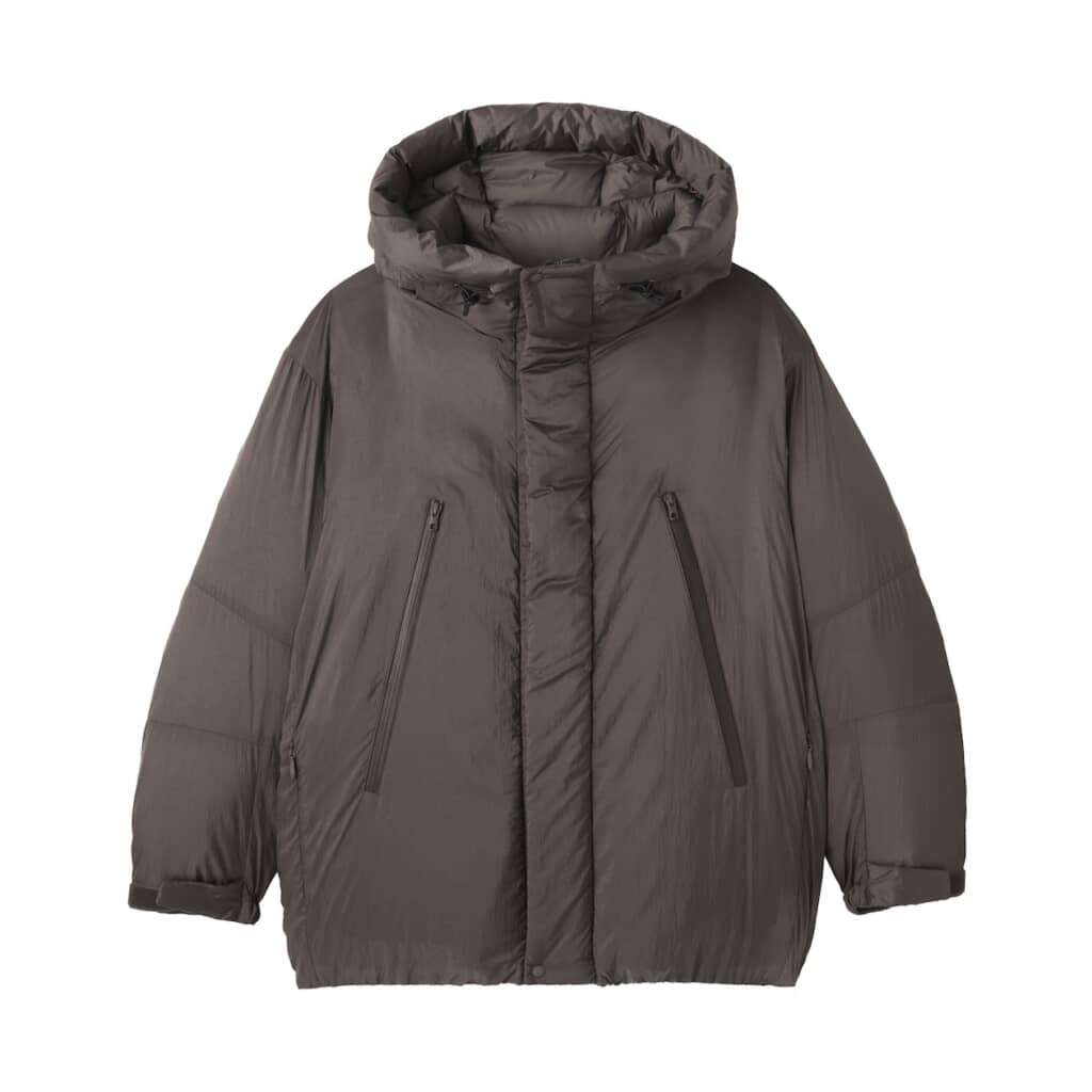 表地には20デニールのミニリップストップ生地を採用し、高い密閉性と独特の光沢、シワ感が特徴です。中わたには750フィルパワーのダウンをたっぷり封入することで、見た目はすっきりしながらも真冬の街歩きにも対応できる保温力を確保。軽い着心地と暖かさを両立させた設計になっています。