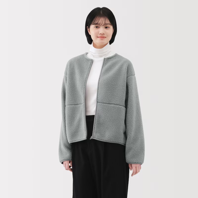 朝晩の冷え込みが強まる季節、家の中でも外出でも気軽に羽織れるアイテムを選びたい人におすすめなのが、無印良品の「婦人 ボアフリースジャケット」です。