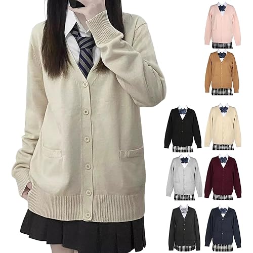 14位:[HOTIAN] スクールカーディガン 女子 制服 Vネック スクールセーター 高校生 無地 ニットカーディガン 春 夏 秋 冬 通年 通学 通勤 春秋冬