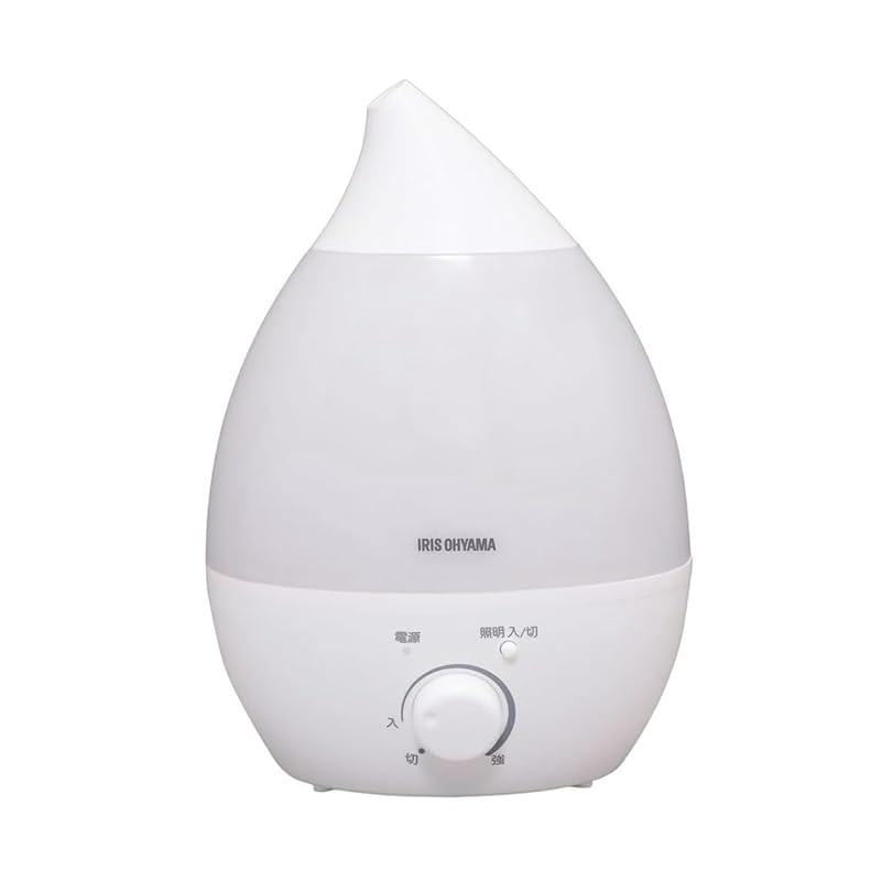 アイリスオーヤマの「UHM-280S」は超音波タイプの加湿器。水を高振動で細かく霧状にして放出するため、立ち上がりが速く、吹き出すミストも熱くならずやけどのリスクが低いというメリットがあります。(一方で、水質やタンク内の汚れがそのままミストに影響しやすいため、定期的な水換え・タンク掃除が推奨されます)かわいらしいしずく型デザインも特徴で、インテリアに溶け込むのもうれしいポイントです。