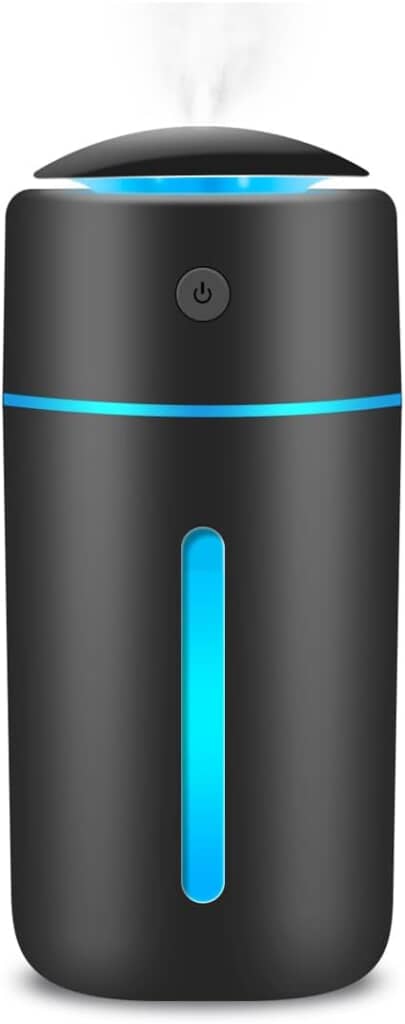 サイズは、縦16.5センチ・横7.7センチで重さは約257グラム。持ち歩きしやすいので、車・オフィス・ベッドサイドなどさまざまな場所で活躍してくれます。動作音は、30デシベル以下で仕事や睡眠の妨げになりません。噴射パターンは連続・間欠の2種類。連続モードは4時間・間欠モードは8時間経過すると自動で電源が切れる設定です。7色のLEDライトが搭載されているので、好きな色を選んで点灯させたりグラデーションモードにしたりとカスタマイズ可能。ナイトライトとしても活用できます。