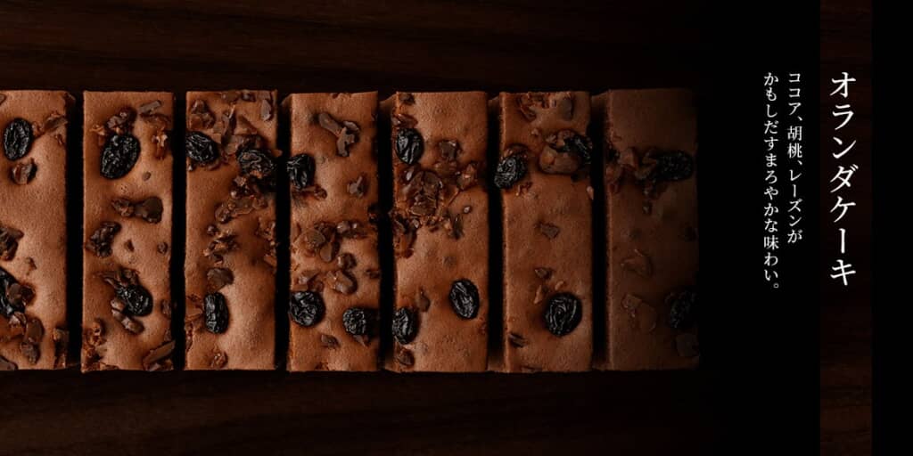 同じく第2位となったのは、カステラ本家 福砂屋の「オランダケーキ」でした。福砂屋が展開する伝統的なカステラに、香り高い良質なココアとくるみ、レーズンを加えて作られたカステラです。カステラの中では珍しいココアの茶色や、くるみ・レーズンと一緒に焼かれた生地の形などを目で見て楽しむこともできます。