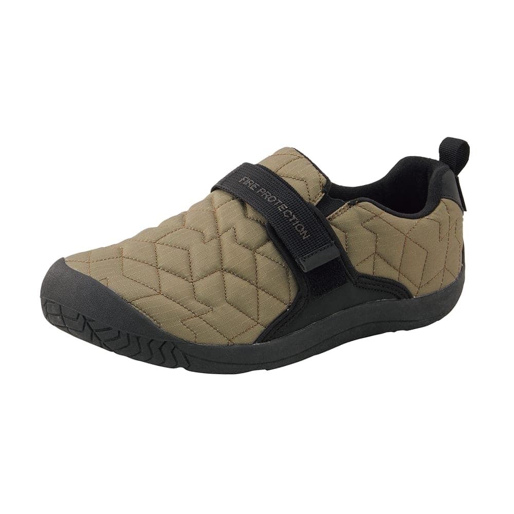 そんなワークマンの「防寒防炎キャンパーモック」は、ワークマンが展開する秋冬向けの防寒モックシューズ。アッパー生地には防炎性能を持つ素材が使われており、焚き火の火の粉が当たっても炎が燃え広がりにくい仕様になっています。甲の部分には面ファスナー付きのベルトがあり、締め付けを細かく調整できるので、厚手の靴下でもフィット感を出しやすいのが特長です(ベルト部分は防炎素材ではありません)。