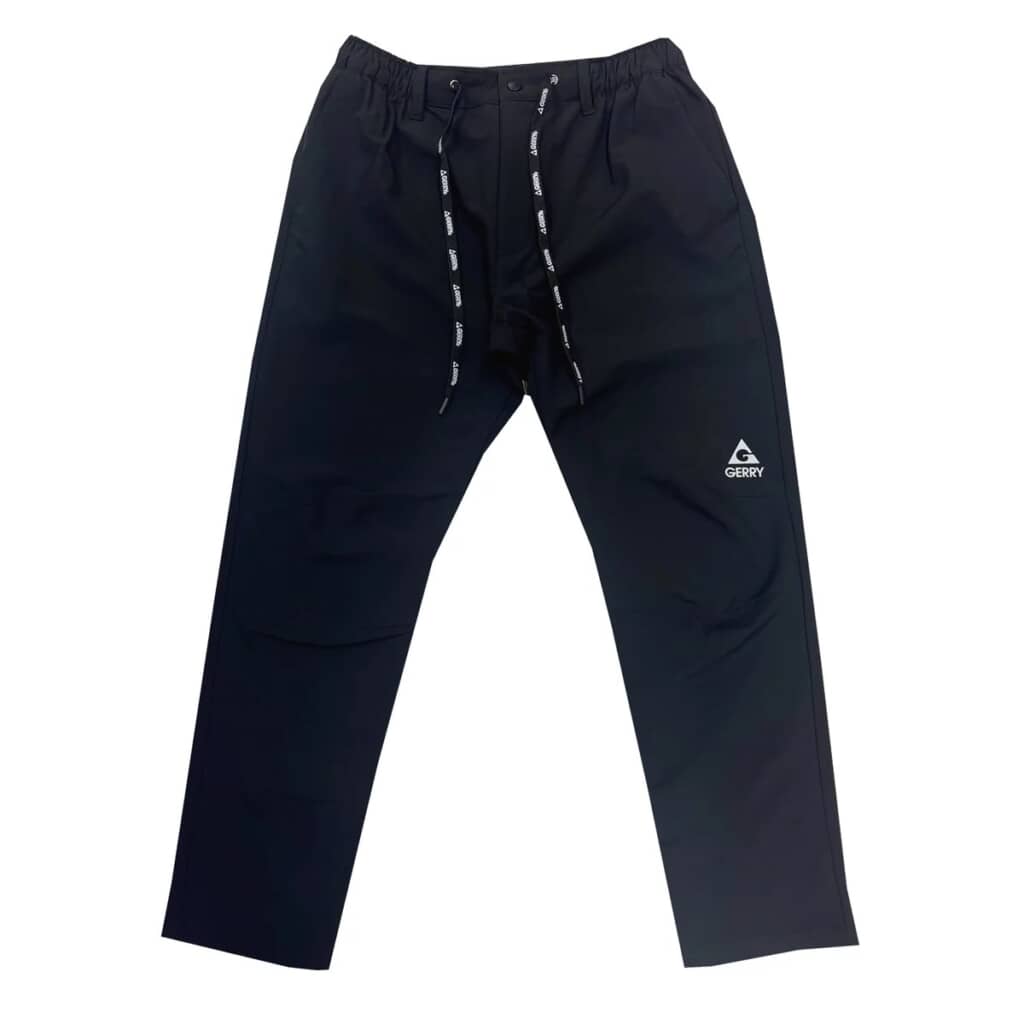 素材はポリエステル92%・ポリウレタン8%で、伸縮性があり動きやすさを意識したつくりです。カラーはブラック・ネイビー・カーキの3色展開。左脚にはブランドロゴが添えられており、控えめなアクセントになっています。