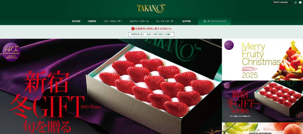 第1位は、得票率は6.4%で「日本橋 千疋屋総本店」が選ばれました。1834年に日本橋に創業した老舗で、季節ごとの味わいを楽しめるケーキやタルトやコンポートなど、さまざまな種類のフルーツギフトを取りそろえます。