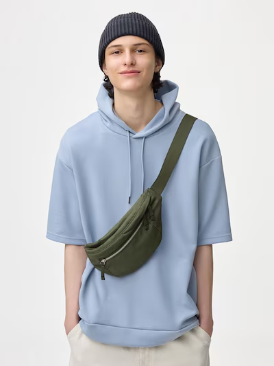 GUの「ナイロンツイルベルトバッグ+E」(1990円)は、ナイロンツイル素材を採用した軽量かつ実用的なユニセックス仕様のバッグです。サイズは、縦14.5cm×横(上部)33 cm、マチ9cm、ショルダー長さは50〜159cm、重さの目安220gという軽量設計。折りたたみ傘やペットボトルが収まる収納力を備えつつ、ボディバッグとしてもウエストバッグとしても使える絶妙なちょうどいいサイズ感です。