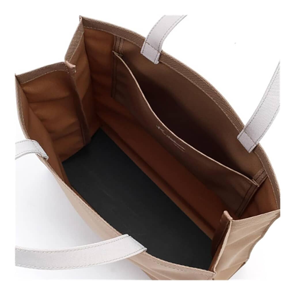そんなキタムラの「ショッピングバッグ RH0562」は、使い勝手の良さと軽やかなデザインが魅力の、デイリーユースにぴったりなアイテム。素材には軽量で扱いやすいポリエステルを採用しており、バッグ本体の重さは120グラムと軽量。縦長のすっきりとしたシルエットは、A4サイズのバインダーがぴったり収まる設計で、書類やノート、タブレットなどの持ち運びに便利です。マチ幅は9センチあり、必要最低限の荷物をしっかり収納できます。開口部はオープン仕様で、中身の出し入れがスムーズ。内ポケットが1つ付いており、スマートフォンや鍵などの小物を整理して収納できます。また、底板によって荷物を入れても型崩れしにくく、見た目もきれいにキープできそうです。カラーも複数展開しているため、好みのものを探してみてください。