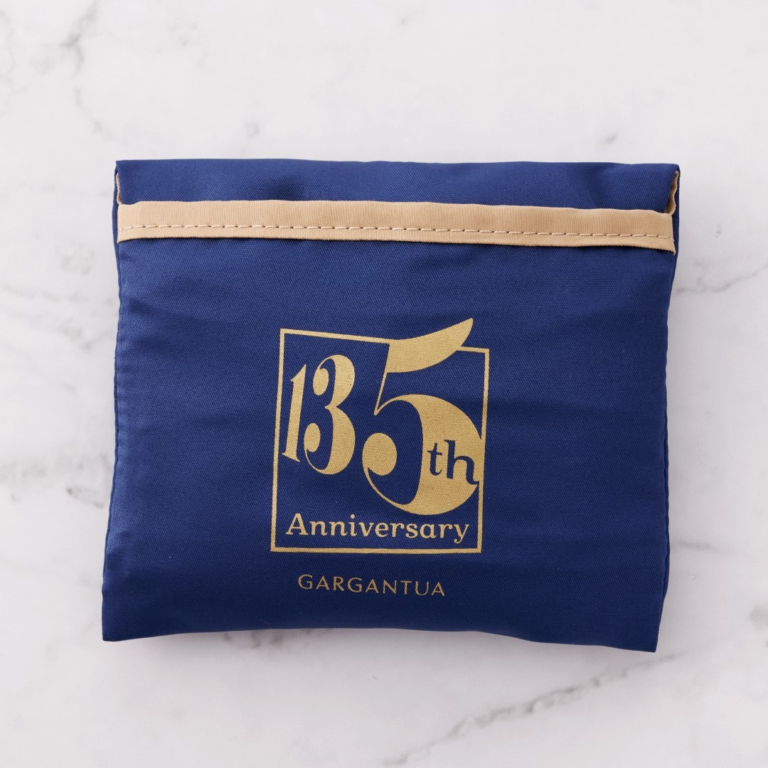 2025年11月3日に開業135周年を迎えた帝国ホテルから、コーポレートカラーである「インペリアルブルー」と「インペリアルゴールド」をイメージした、華やかなエコバッグが登場。「ガルガンチュワ」のロゴと、帝国ホテル開業135周年記念のシンボルマークがデザインされたエコバッグは、深みのあるブルーにゴールドが映え、高級感ある印象になっています。