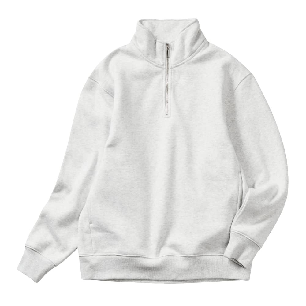 そんなワークマンの「ヘビーウエイト裏起毛ハーフジップ」は、ワークマンが展開する秋冬向けのスウェットトップスです。綿75%・ポリウレタン25%のヘビーウエイト生地に裏起毛を施し、しっかり暖かいのに、やわらかくゴワつきにくい着心地が魅力とされています。ジップを上まで閉めれば首元まで覆われ、冷たい風を防ぎやすく、よりあたたかく着られます。ジップを開ければインナーとのレイヤードが映えるため、コーデの主役にもなってくれます。