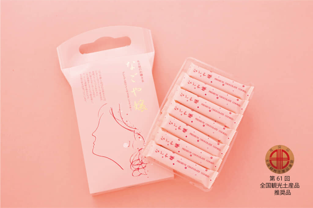 北海道名寄産や熊本県八代産のもち米を使用した餅に、北海道産の小豆から作られたこし餡がのせられています。形状は伊勢神宮神域を流れる五十鈴川のせせらぎをかたどっており、三筋の形のこし餡は清流、餅は川底の小石を表現しているとのこと。ピンク色の和紙で包まれたパッケージからも、歴史や風情を感じますね。